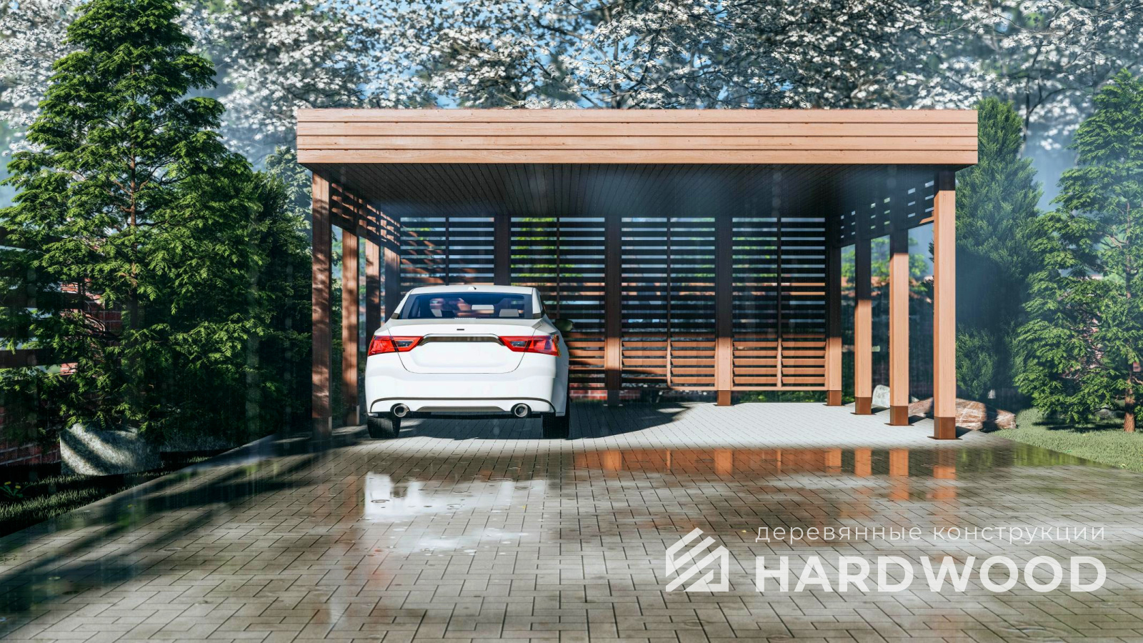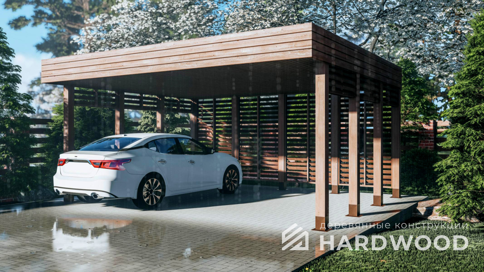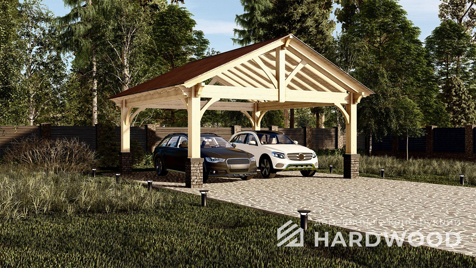 | Название модели: | Деревянный навес для машины на дачу №80 |
